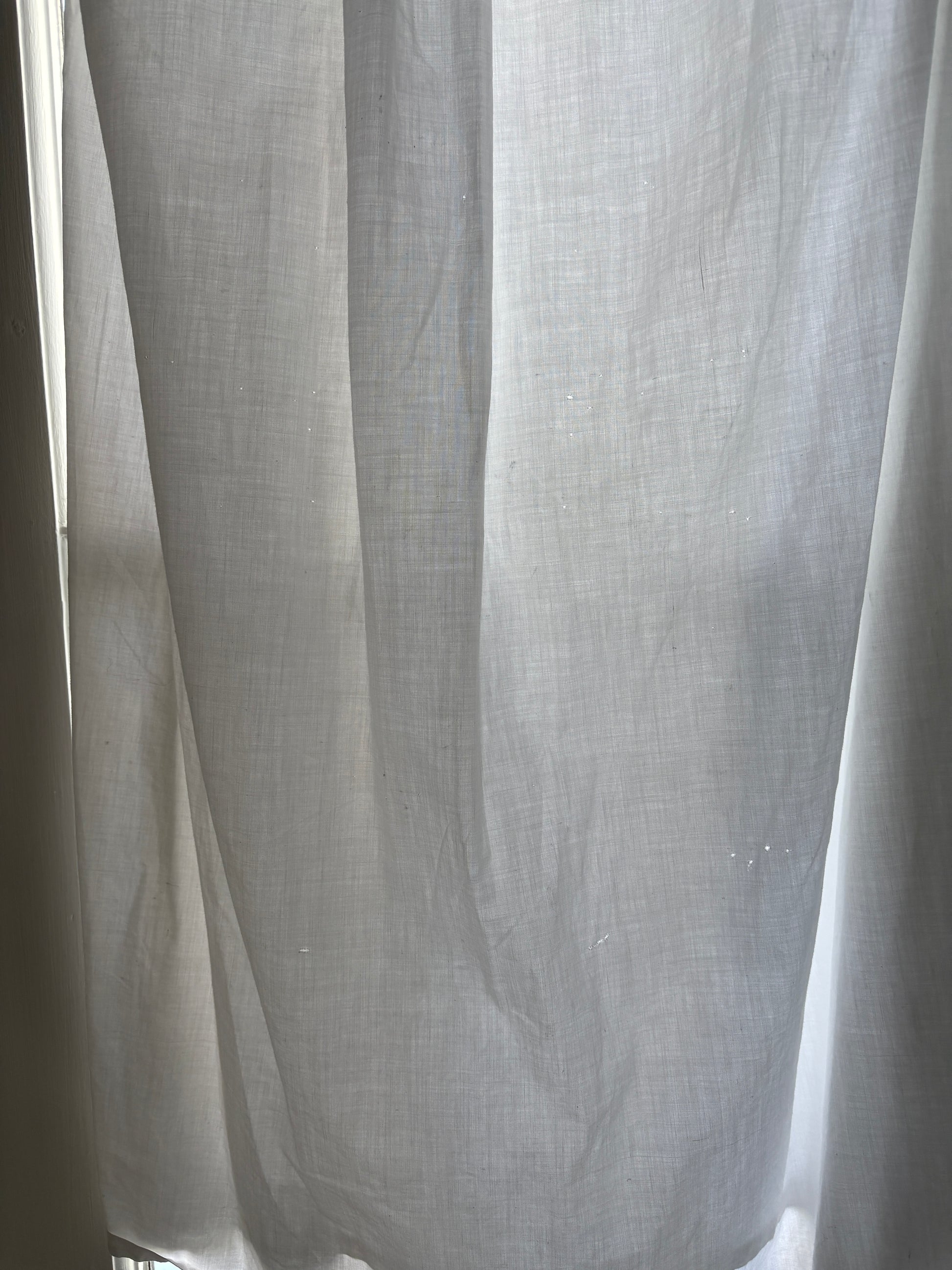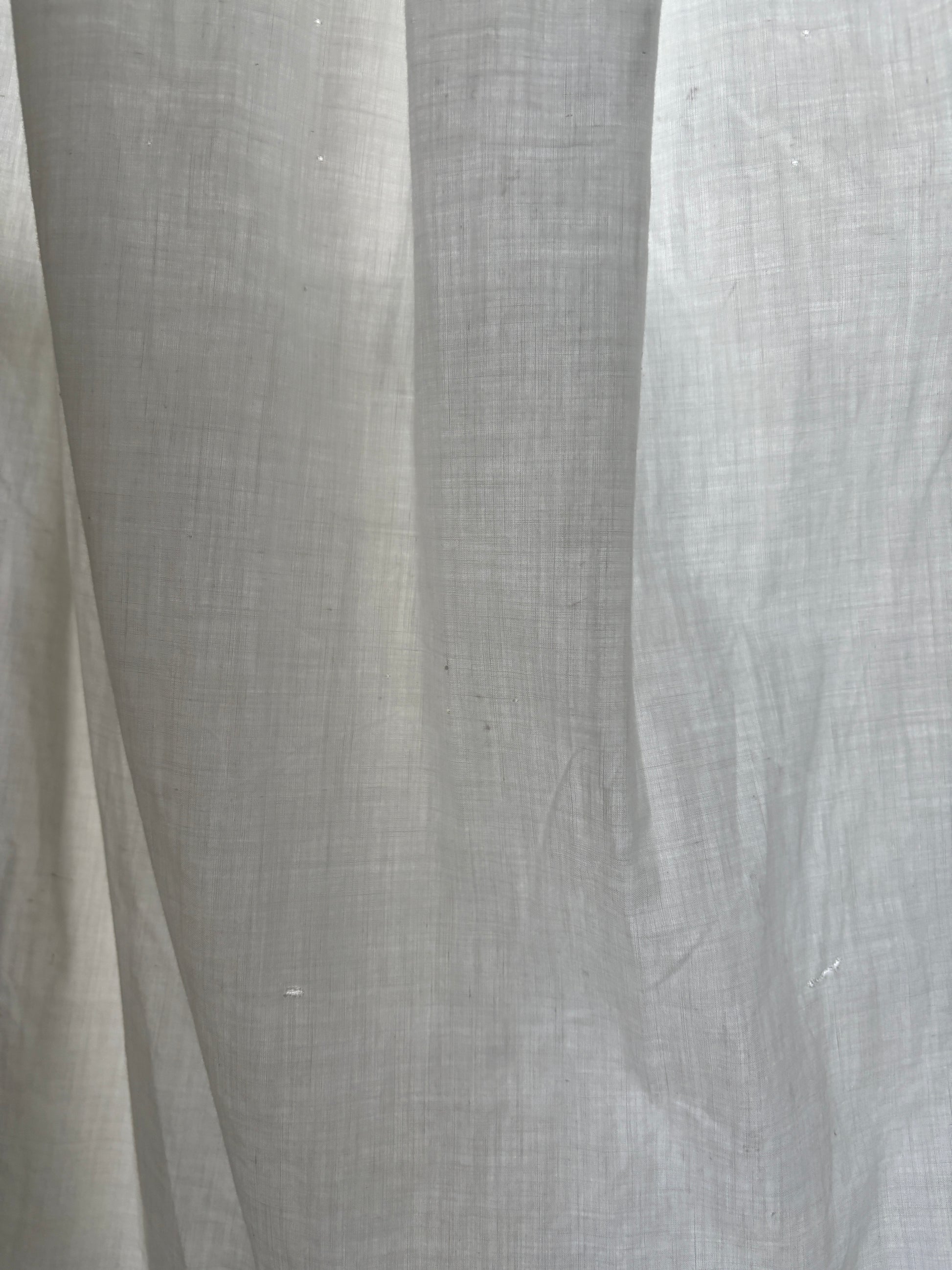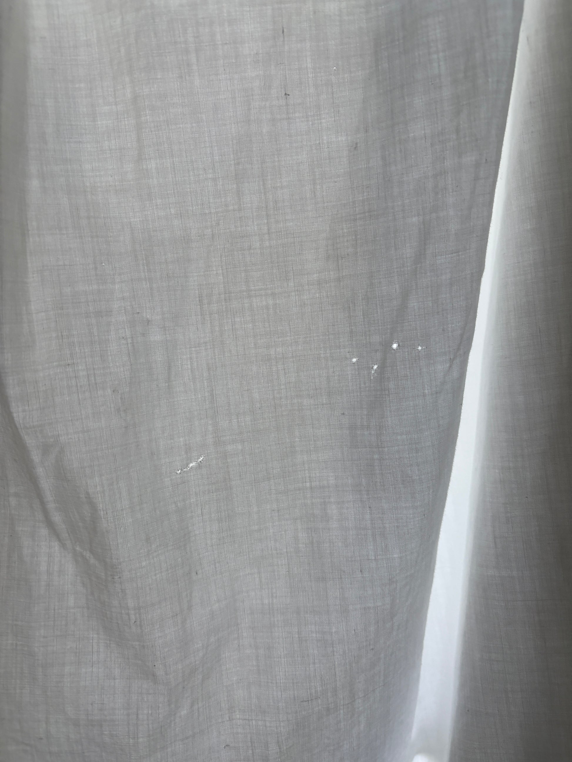 Condition: Very good. There are scattered moth holes (about a pinhead sized) throughout the entire piece, which I've shown in photos 9-16. Some light yellowing to the back of the neck and inside of the collar. In addition, there are small mends under each armpit. I've shown this on my mannequin with the top button undone as it is very, very tight. Better to wear left open.