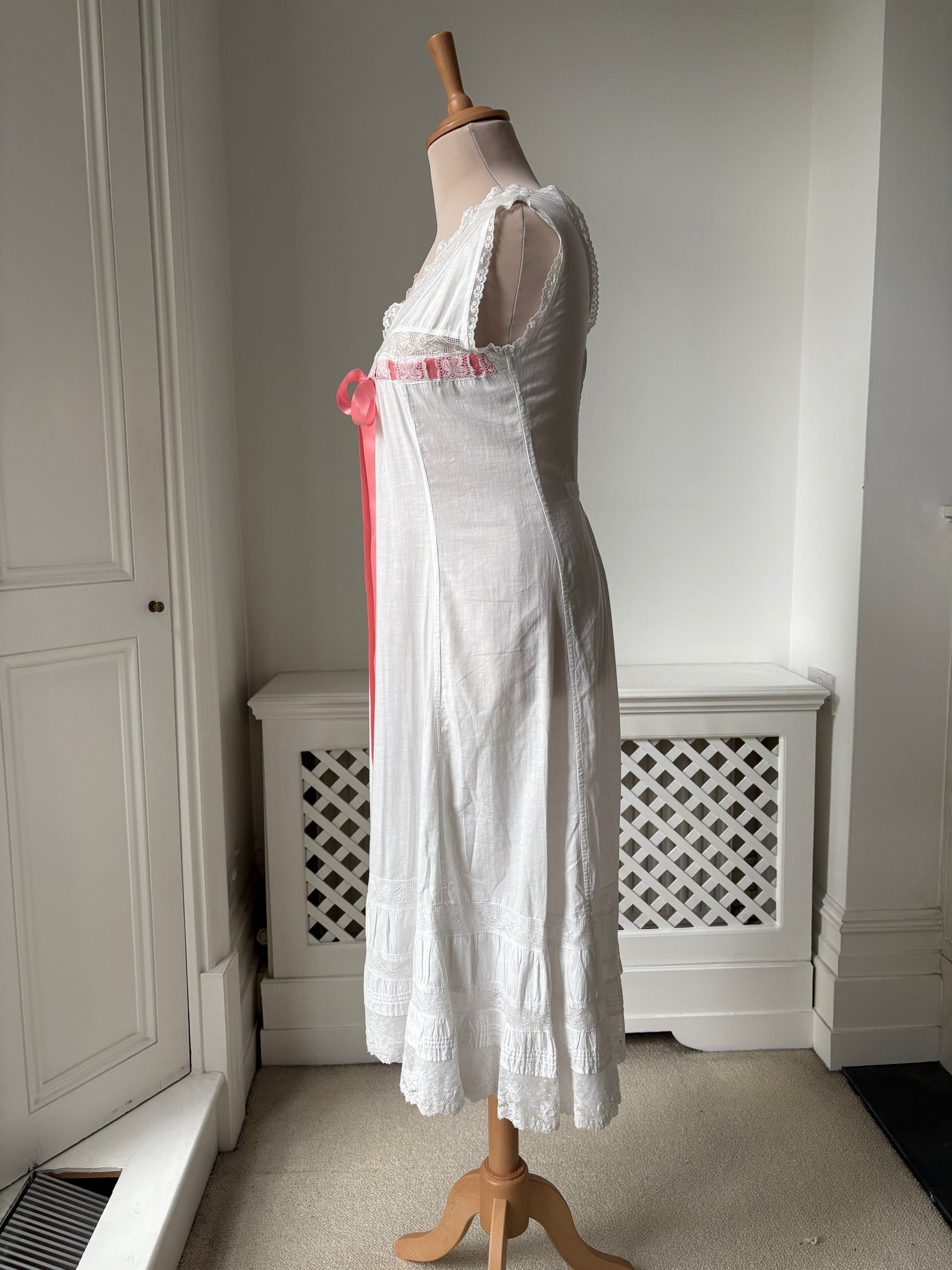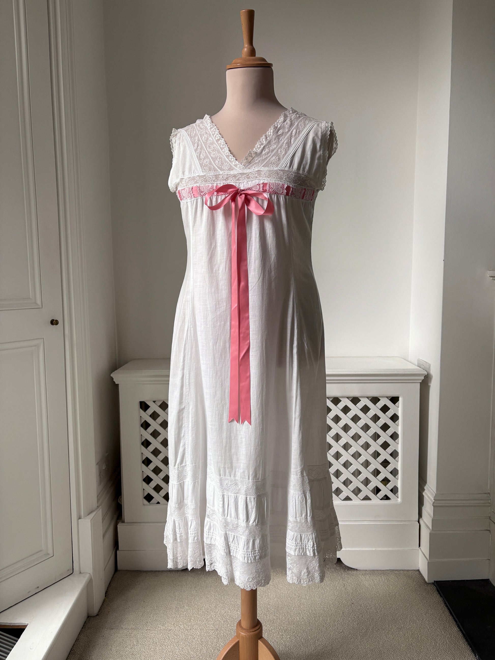 1900s 1910s Edwardian Cotton Nightdress with Ribbon