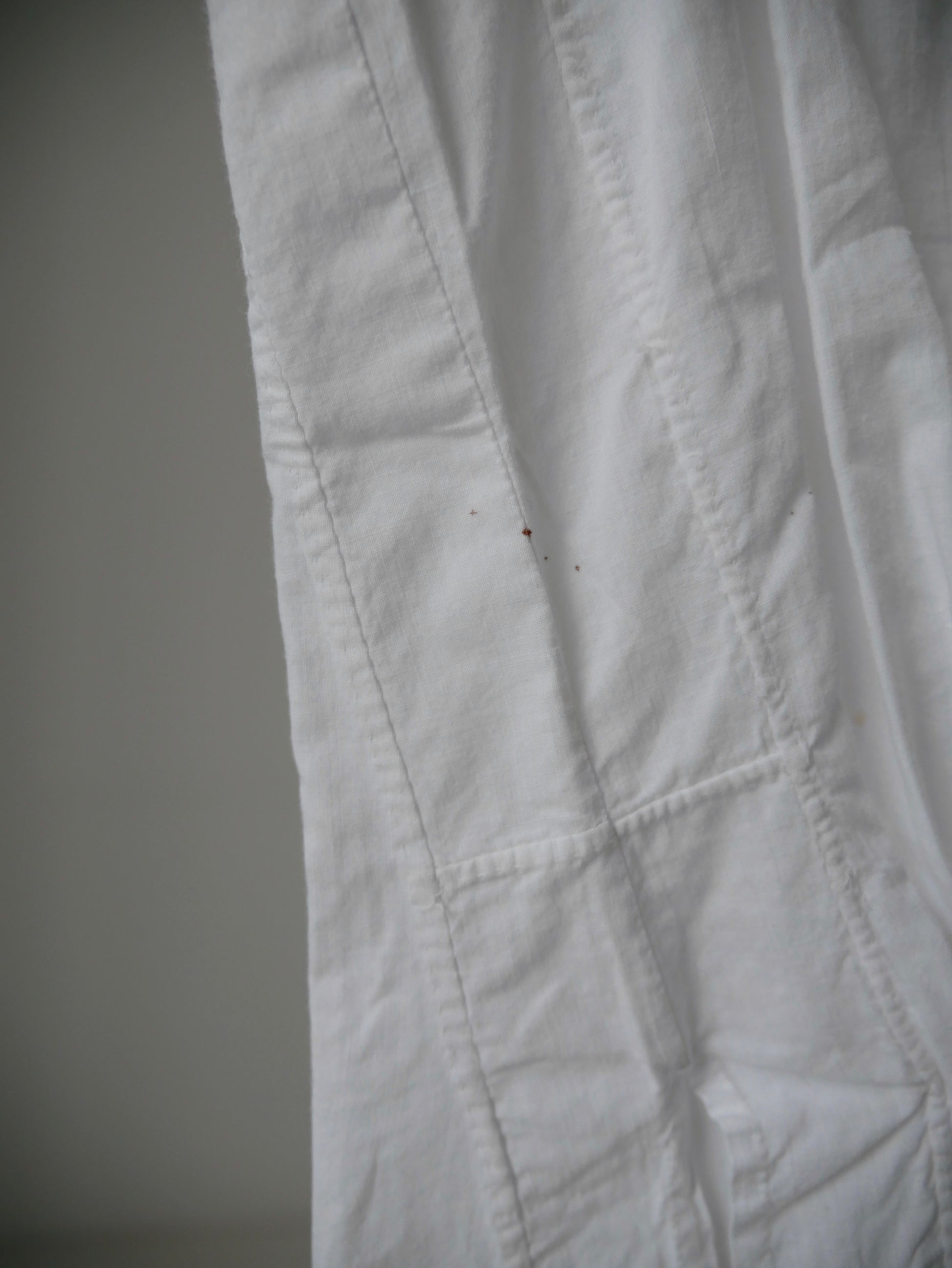 The back has gentle ruching and a small belt to cinch the waist. The two bottom buttons have been removed at a later date to allow for more modern waist measurements.