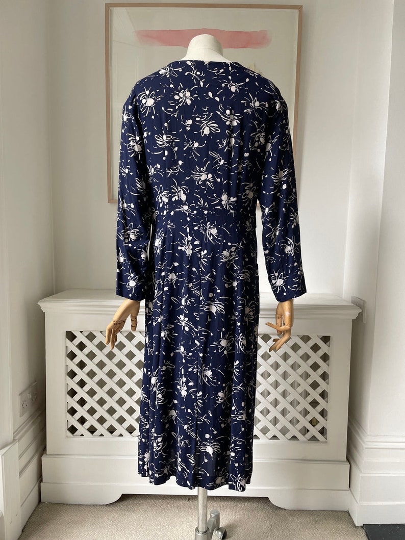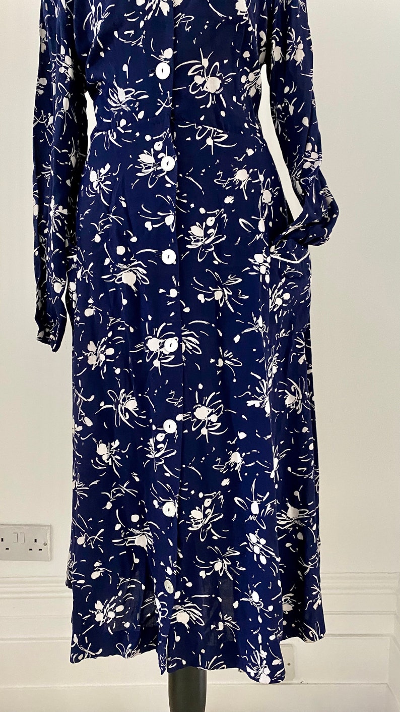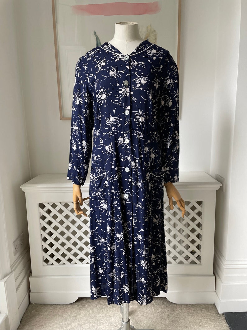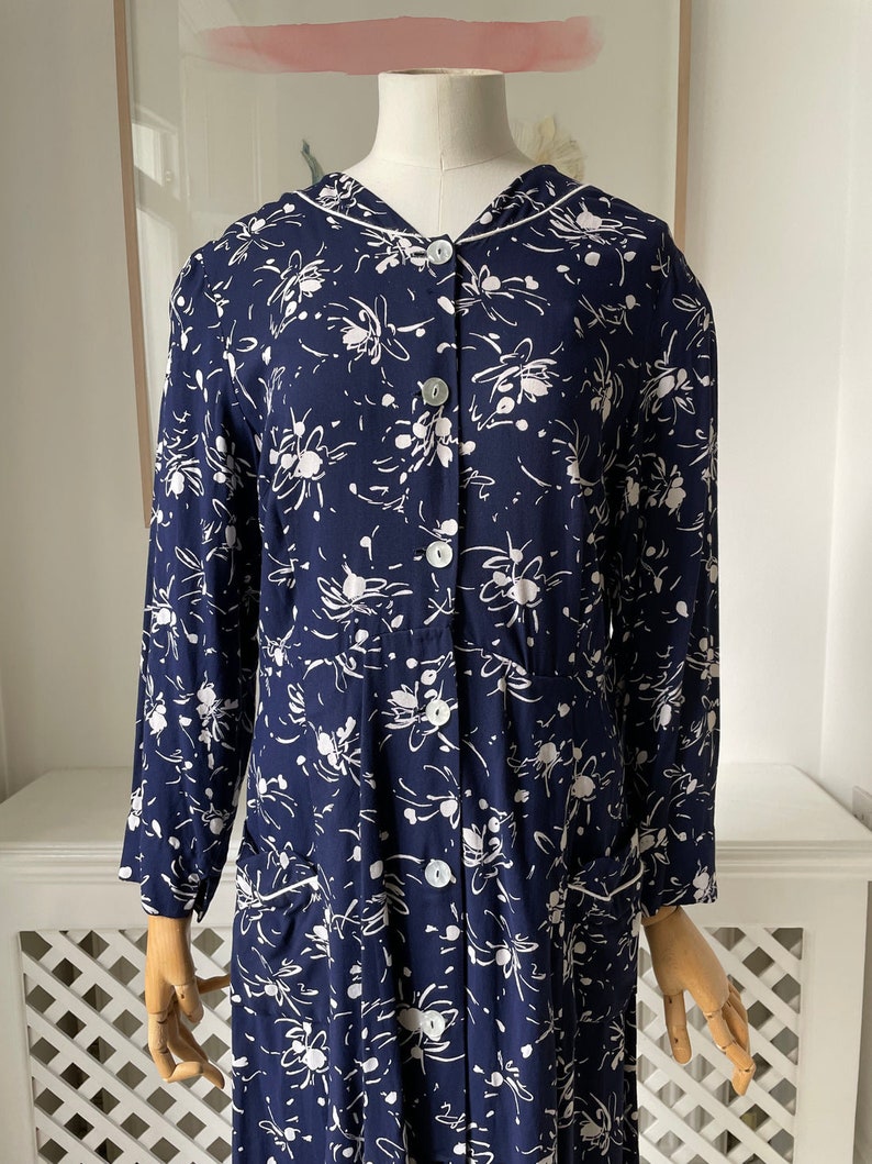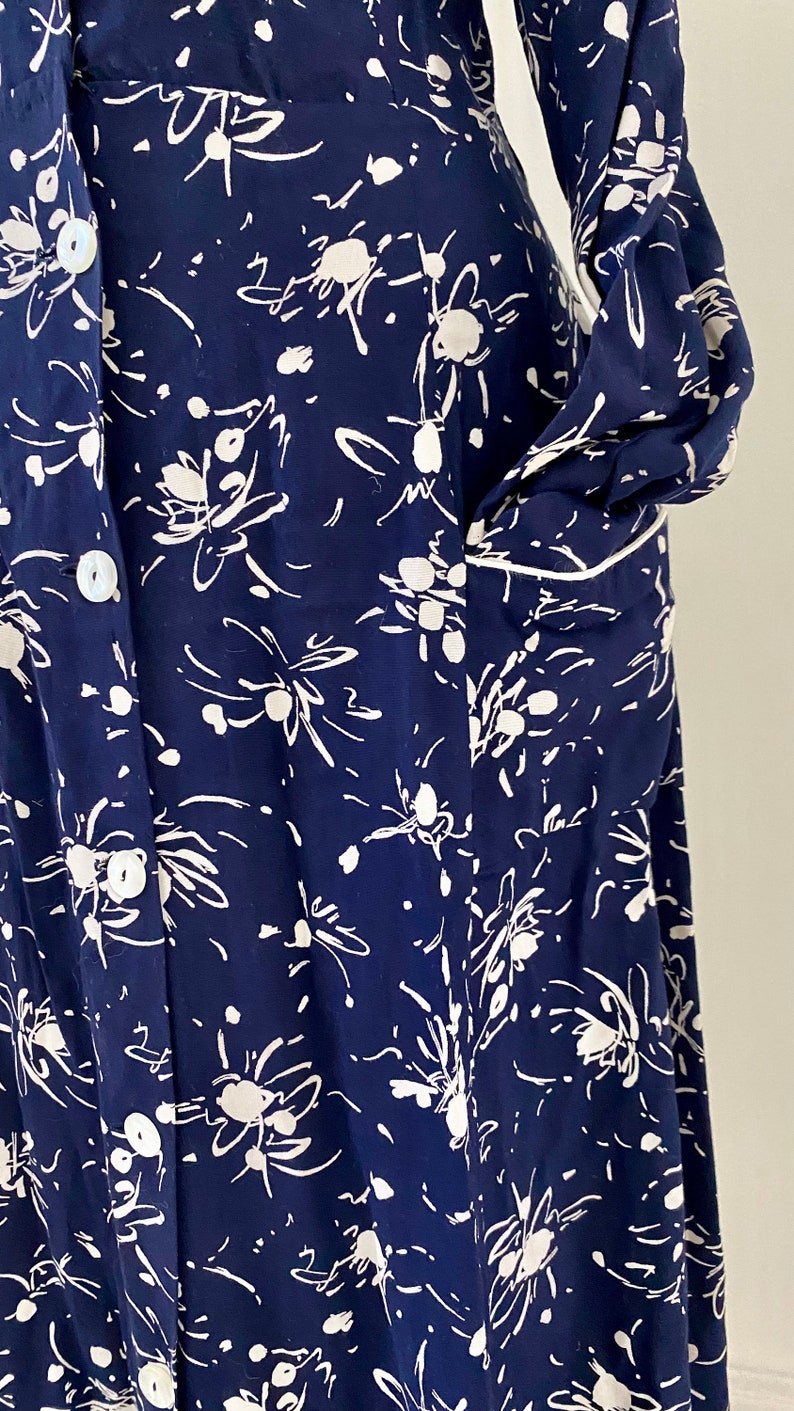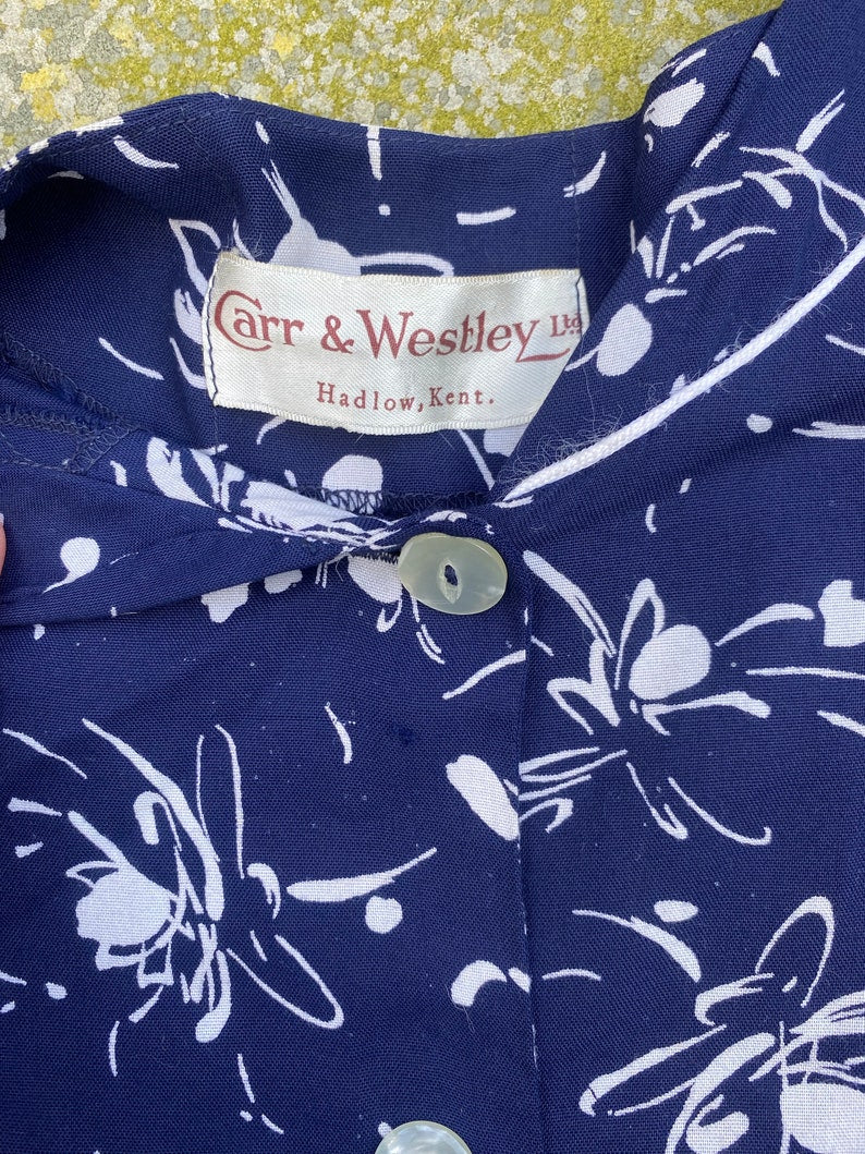 1950s Cotton Navy Floral Day Dress