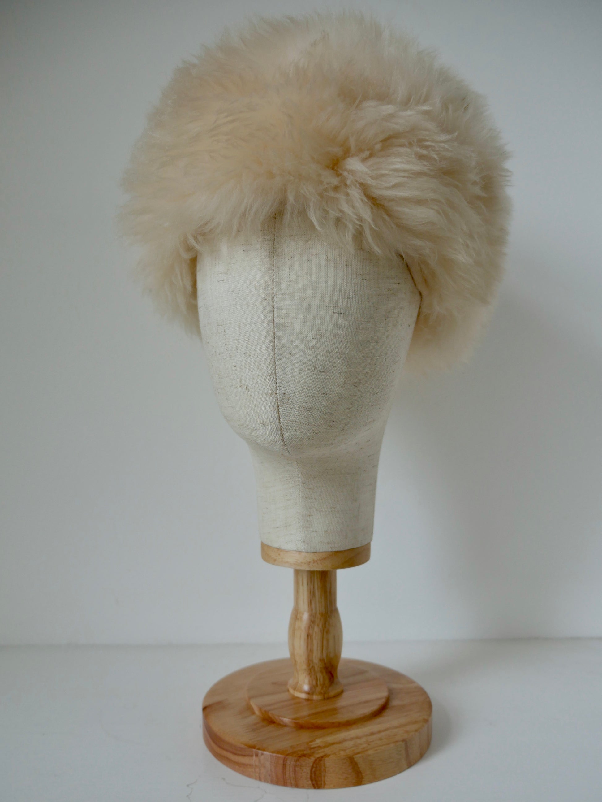 Made from natural sheepskin hide, this lovely 70s box hat is a lovely cream shade. It is unlined on the inside, with no labels. A fabulous little topper for any winter outfit.