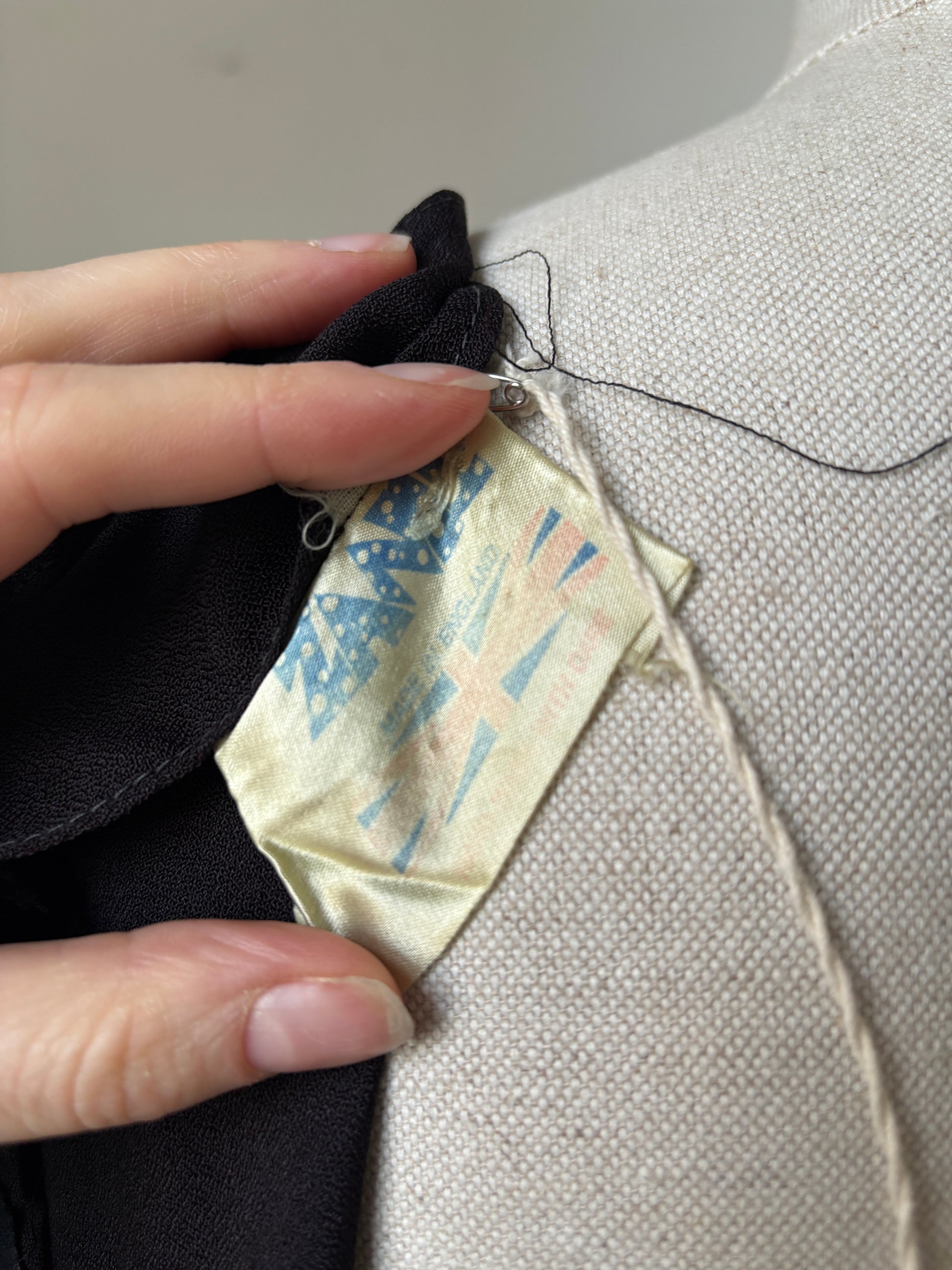 Condition: Very good. Presents very well overall, but with some flaws to note. There are a few small holes near the hem, along with some UV marking and discolouration in areas of the sleeves, skirt, and waist tie. This is not particularly noticeable when worn but has been factored into the price. I’ve shown this as clearly as possible in the photos, so please study them carefully.