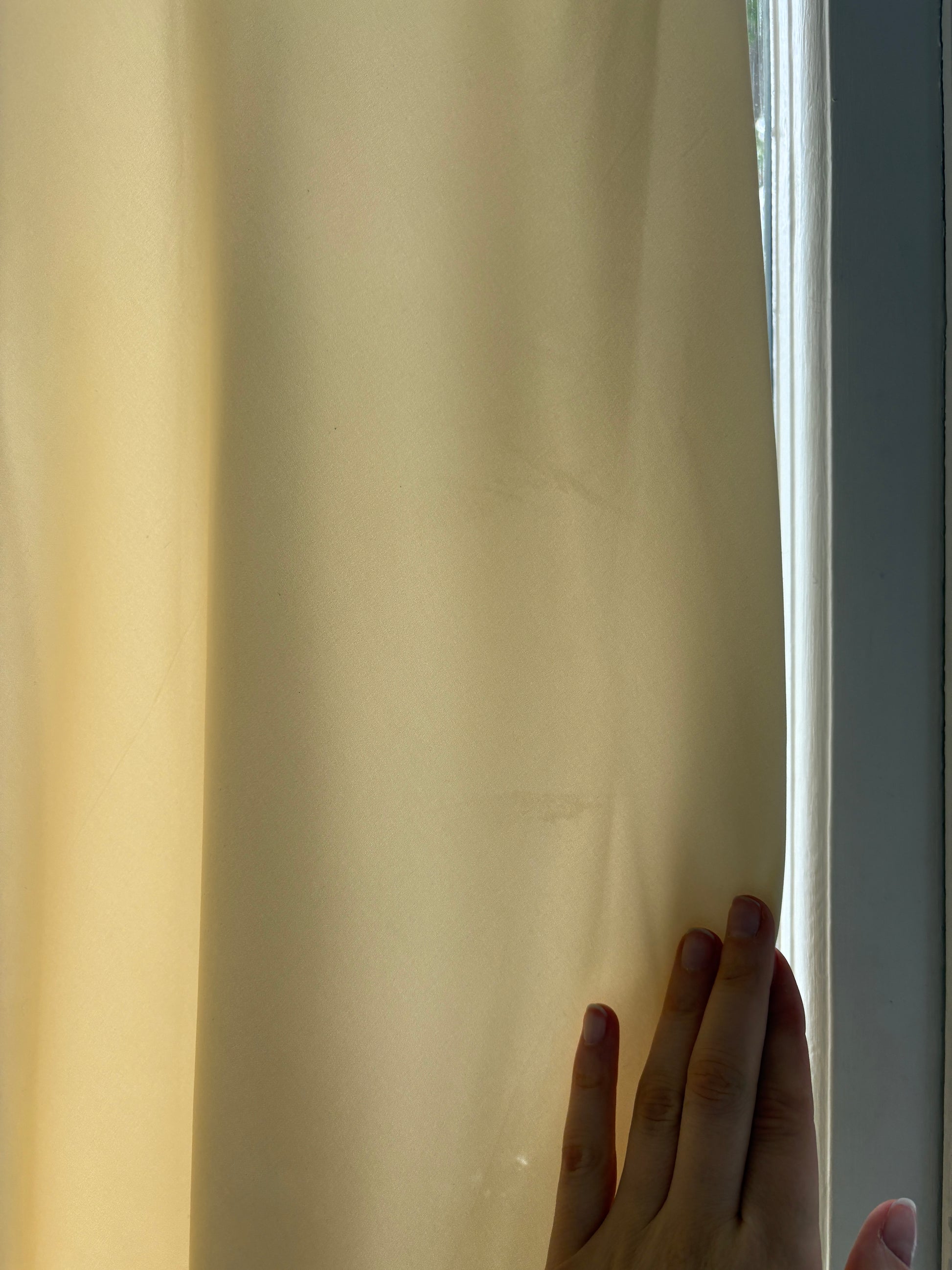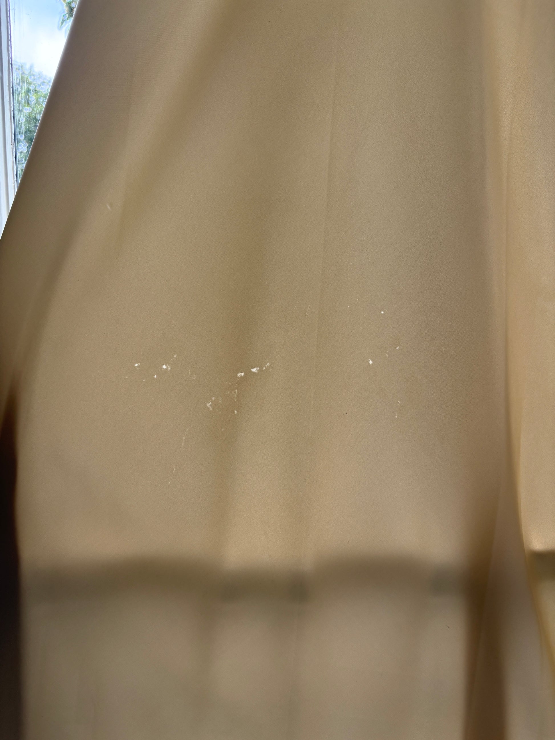 Condition: Good. Both pieces present beautifully but do have some aesthetic flaws. Firstly, apologies for the creases — my steamer couldn’t quite tackle them! The polyester is lightweight and semi-sheer but has a dense, sturdy weave, so a proper press with an iron should smooth it out perfectly.