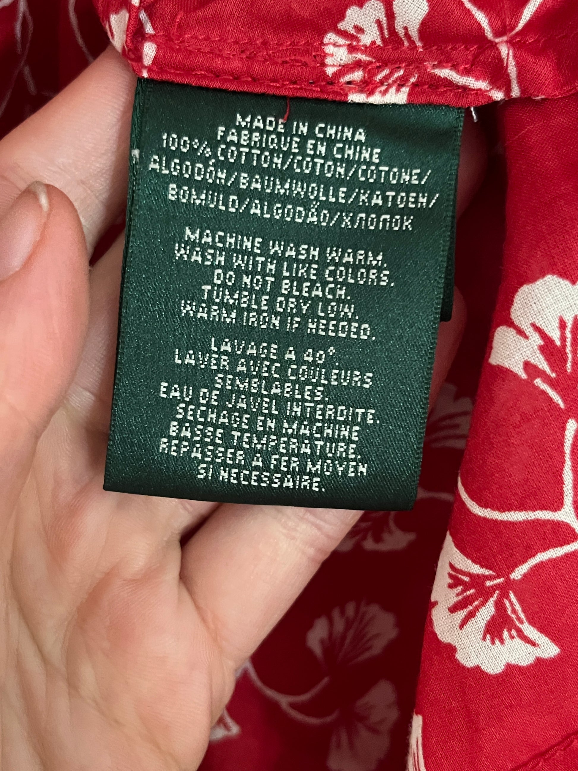 A lovely preloved Ralph Lauren piece — not the oldest, but the gingko leaf print was too good to pass up! From the Lauren by Ralph Lauren line, it’s made from a very soft, lightweight cotton that feels wonderful to wear. It has a interesting wrap over style with a frilled collar and long belt ties to cinch at the waist.